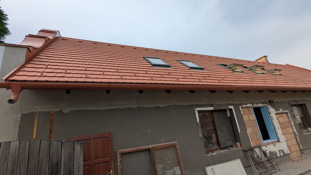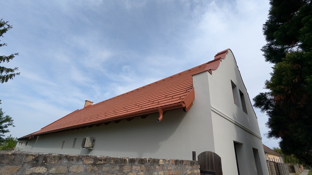 Ház oromzatainak fedése, ereszcsatornázása, kémény szegélyezése.